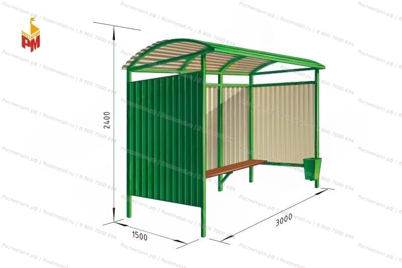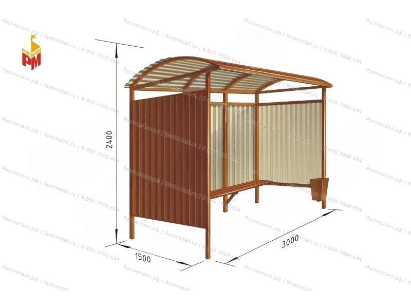 | Каркас | Стойки 50х50 (мм), заполнение 50х25 (мм), профнастил 0,5 (мм) |