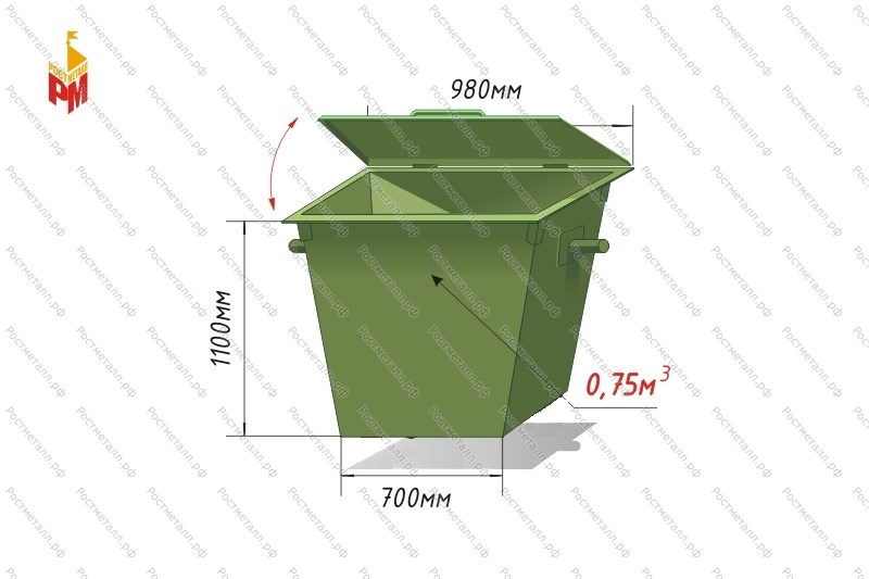 Контейнер металлический для мусора объём 0,75 м3 c еврозахватом