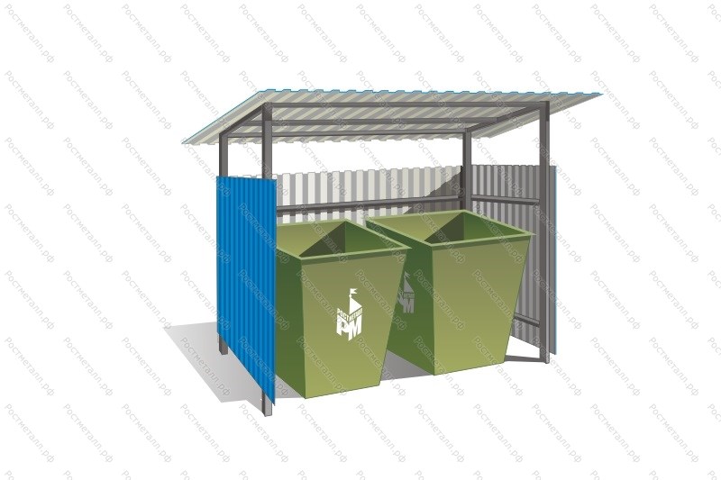 Контейнерная площадка для мусора с крышей на 2 контейнера