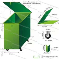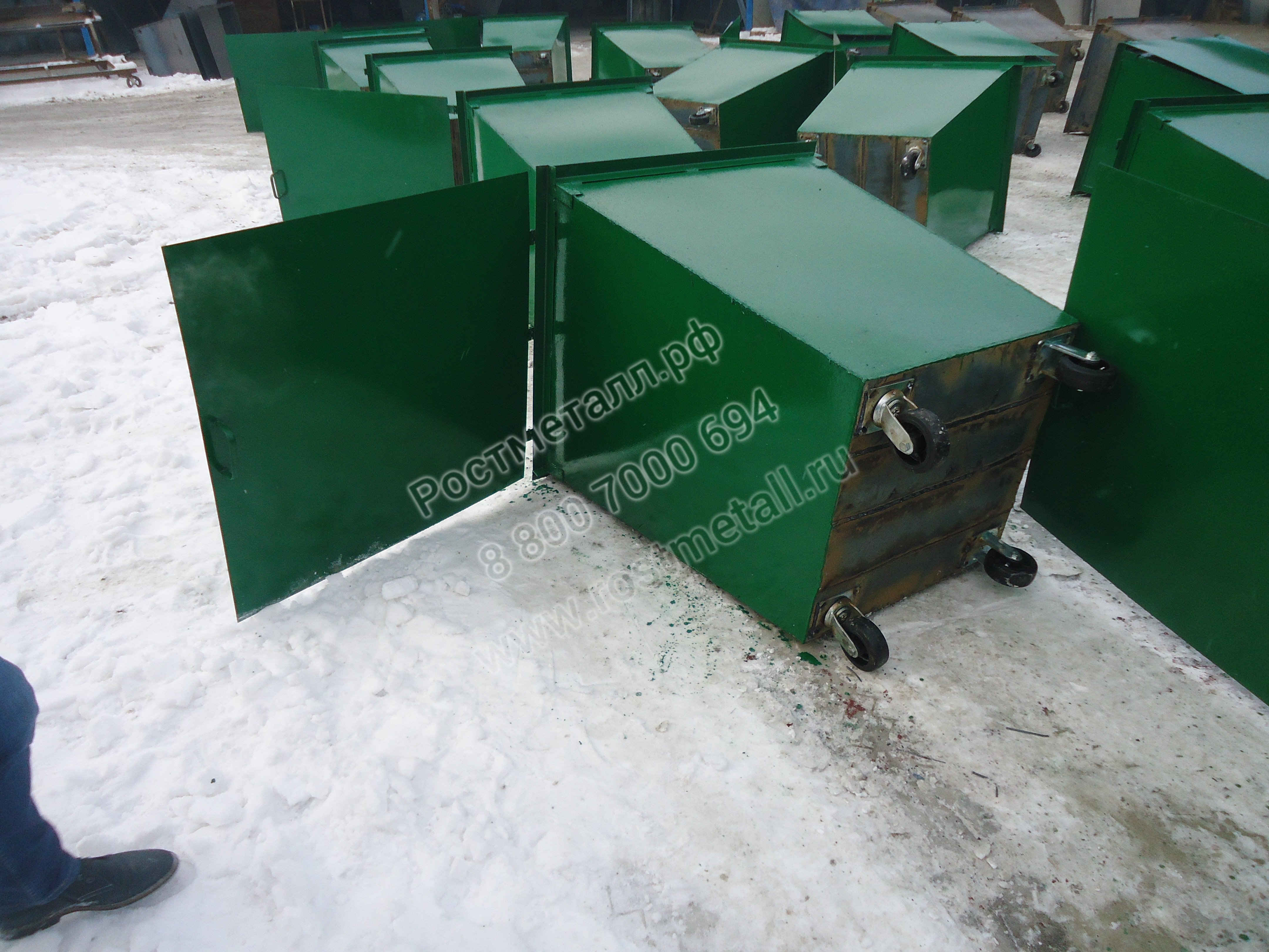 Металлические контейнеры от (0,3 м3 = 300 л) до (1,6 м3 = 1600 л) - сварная конструкция из металла марки СТ3. Всегда имеются в наличии стандартные контейнеры 0,75 м3. Контейнеры оснащаются крышками и колесами различного типа.