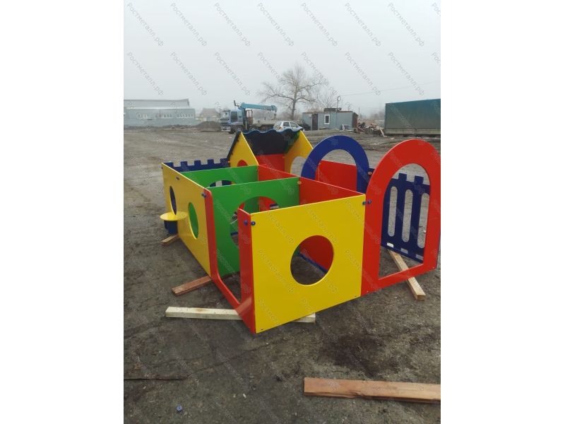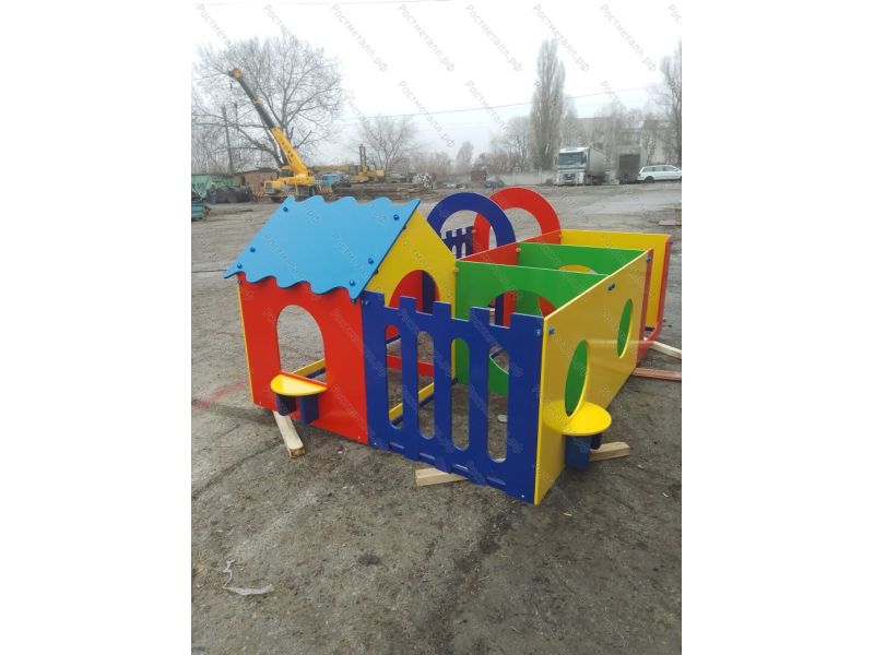 | Комплектация | 6 секций, одна из которых выполена в виде домика с односкатной крышей; переходы выполнены в виде арок, кругов и овалов |