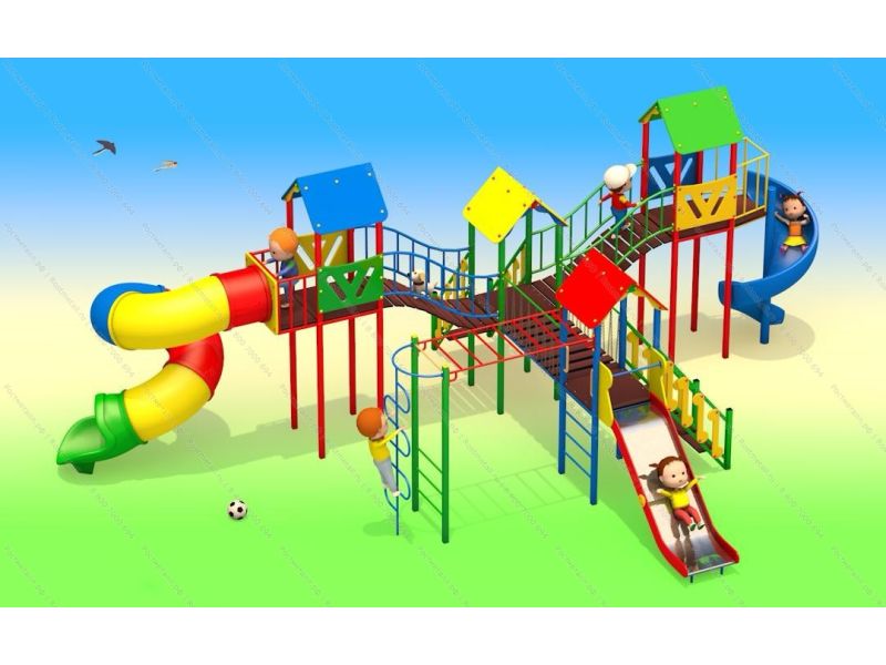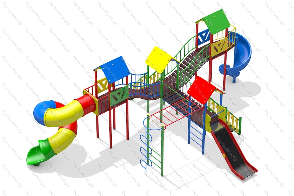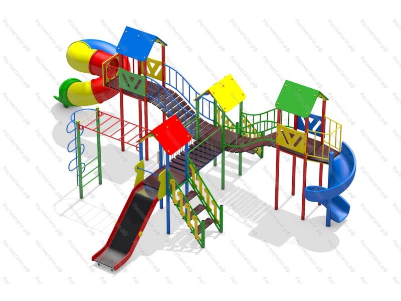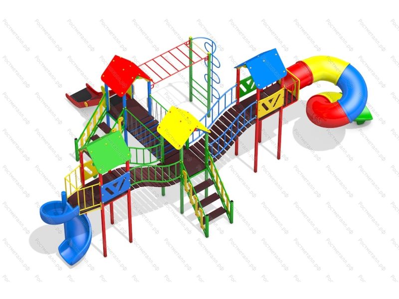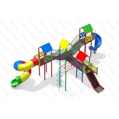 | Комплектация | 2 башни, 2 башни с балконом, лестница подъёмная, 2 изогнутых мостика, подвесной мост, винтовая горка, тоннельная горка, шест-змейка, рукоход. |