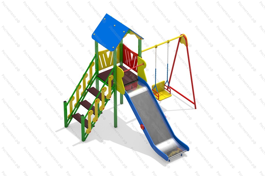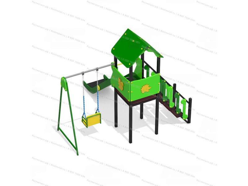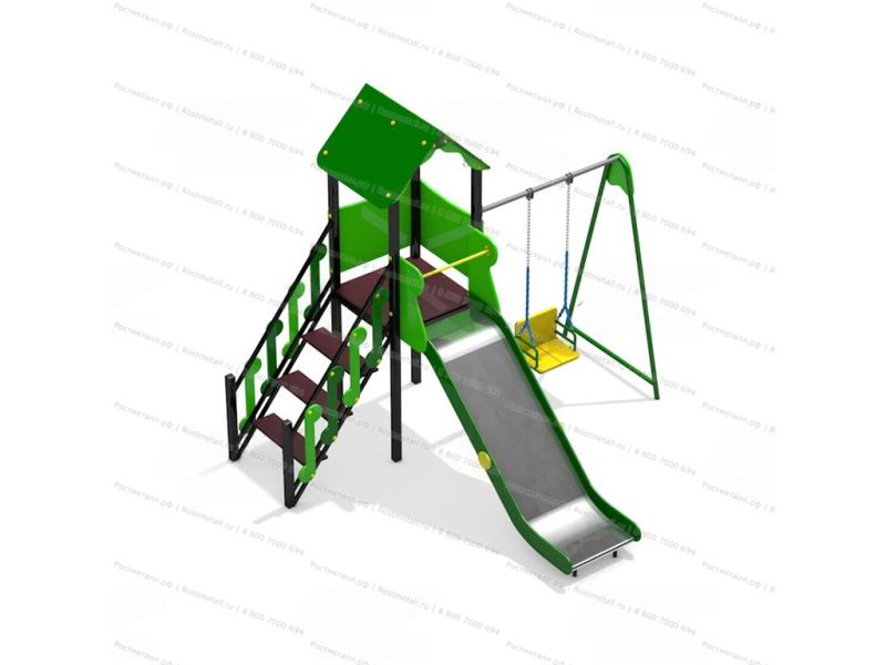 | Комплектация | Башня, скат из нержавеющей стали, подъёмная лестница, качели |