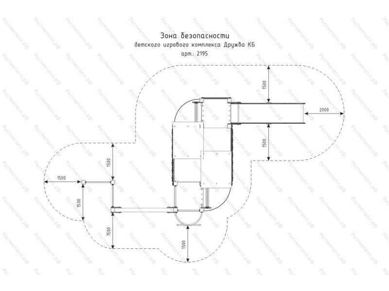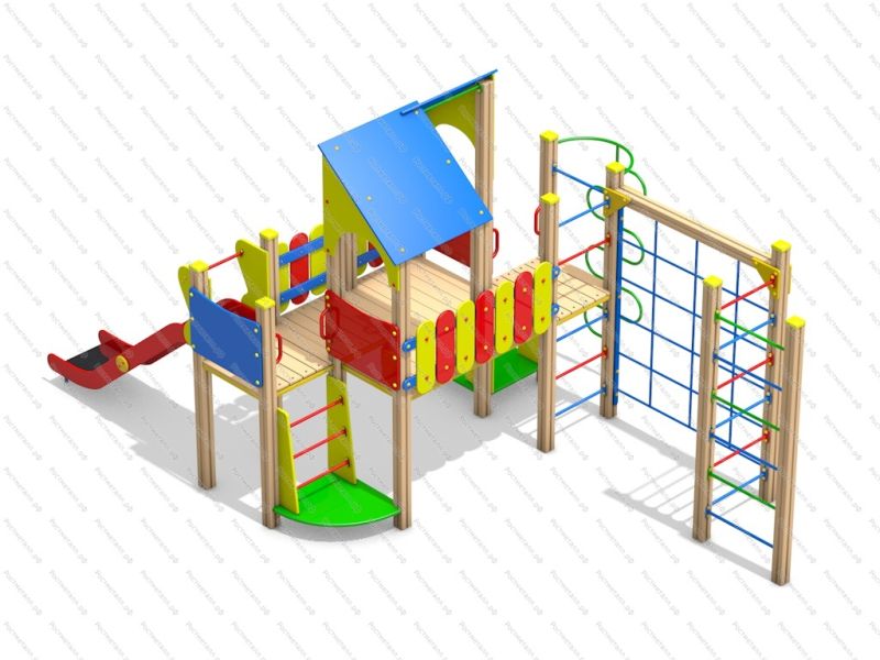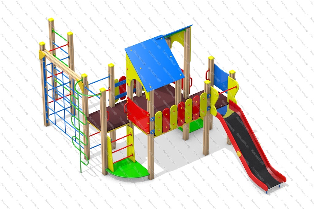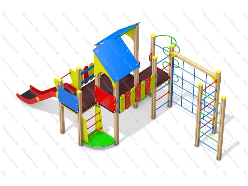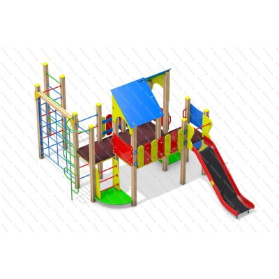 | Комплектация | 2 башни, смотровая площадка, 2 подъёмных лестниц, горка-скат из нерж.стали, шест-змейка, лаз сетка-переход, 2 шведские стенки. |
