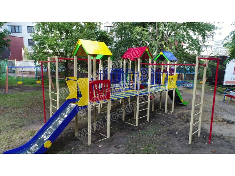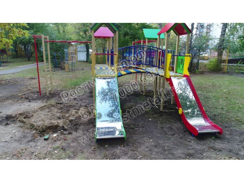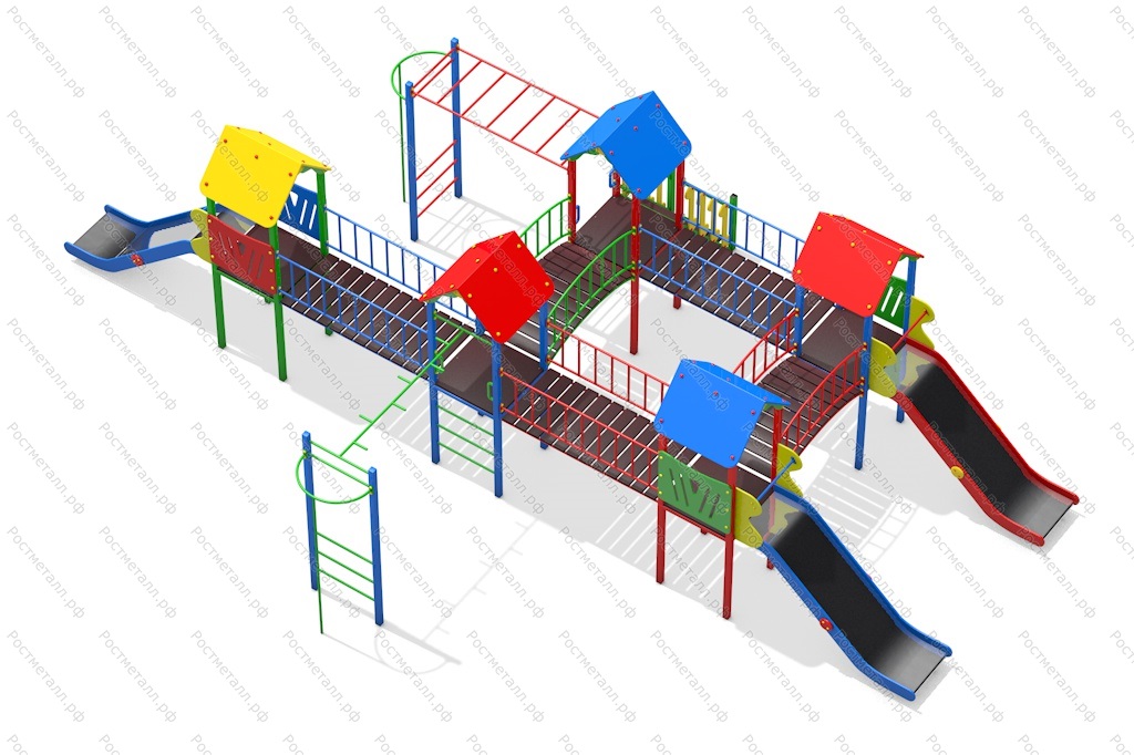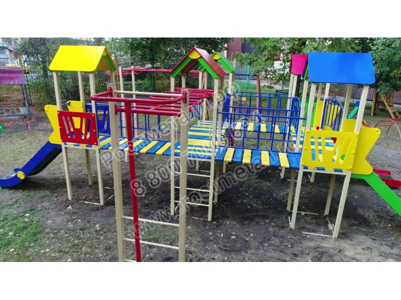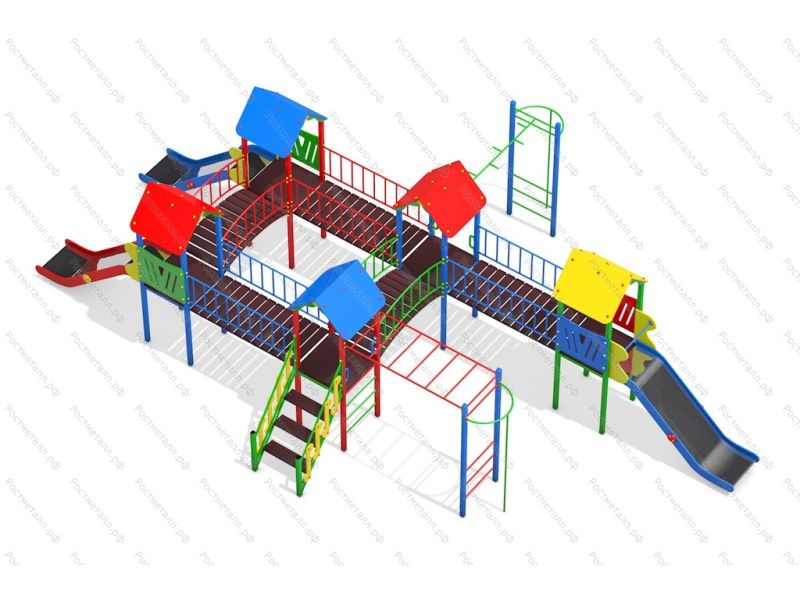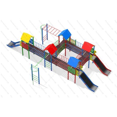 | Комплектация | 5 башен, 3 ската из нержавеющей стали, 3 прямых мостика, 2 мостика полукруга, 2 пожарных шеста, 2 рукохода, подъёмная лестница, кольца гимнастические. |