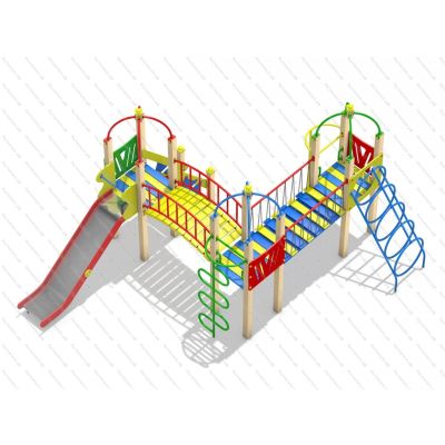 | Комплектация | Башни - 3 шт, скат из нержавеющей стали - 1 шт, подъёмная лестница - 1 шт, мост-арка, подвесной мост, шест змейка, лаз-тоннель, пожарный шест |