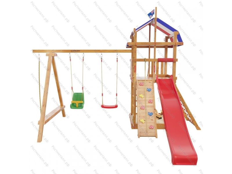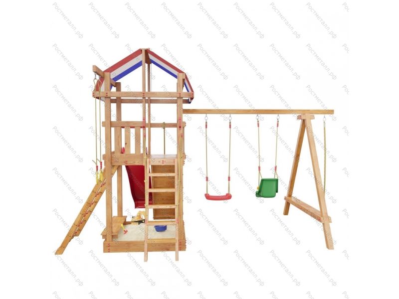 Товар поставляется в разобранном виде. В комплект для самостоятельной сборки входит подробная инструкция по сборке товара. Товар упакован в гофрокартонные короба в количестве: 7 мест + горка + качели со спинкой. Установка детской игровой площадки проводится на ровной поверхности, свободной от насаждений. Размер площадки не менее 5,8м х 7,1м. Рекомендуем зафиксировать конструкцию используя анкера любой формы. Покрытие: 3 слоя защитного покрытия!