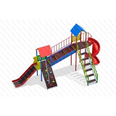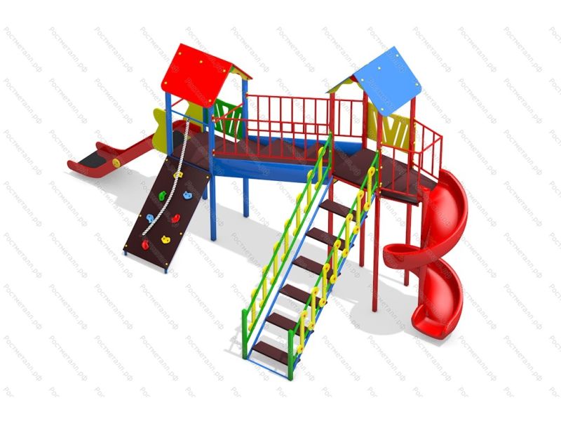 | Комплектация | Башня стандарт, башня с балконом, горка винтовая из пластика, подъёмная лестница, скалодром с канатом, горка-скат из нерж., переход в подъем |