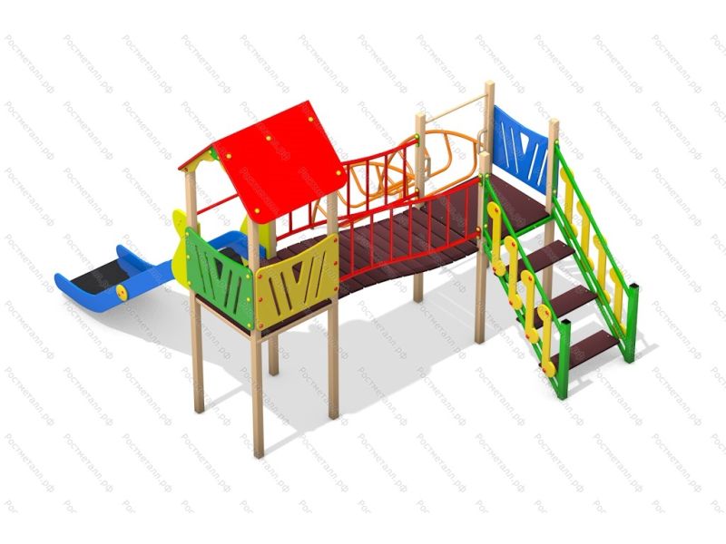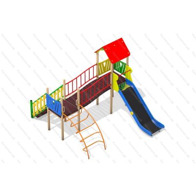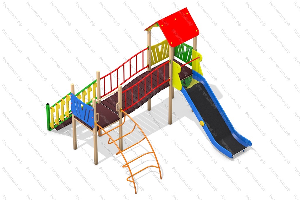 | Комплектация | 2 башни, скат из нержавеющей стали, мостик, лаз-дуга, лестница подъёмная. |