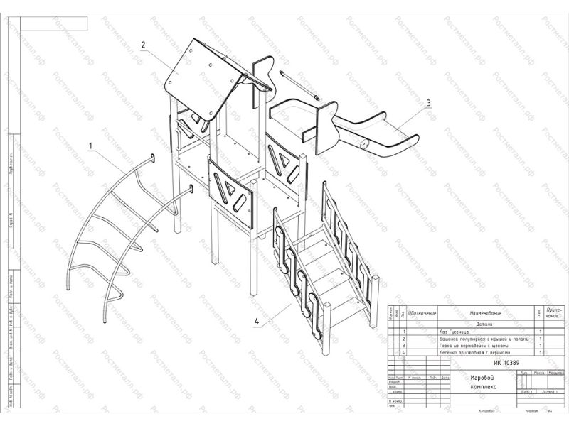 | Комплектация | 2 башни, скат из нержавеющей стали, лаз дуга, лестница подъёмная. |