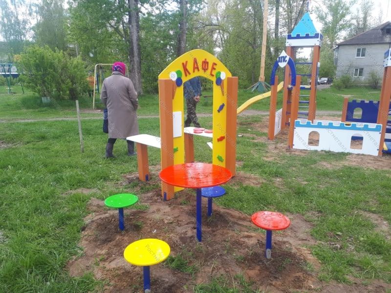 | Описание | Игровой модуль "Кафе" создан специально для сюжетно-ролевых игр в детском саду, таких как: "В кафе", "Дочки-матери", "Семья". Теперь ребятишки могут обучаться на свежем воздухе, вне группы. |