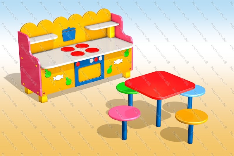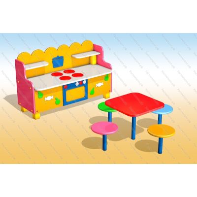 Описание Дополнительно с моделью "Кухня", идет небольшой столик со стульчиками. Можно приобрести модуль отдельно, в любом цвете