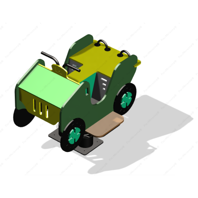 Качалка на пружине должна быть стилизована под квадроцикл и представлять собой устойчивую конструкцию, обеспечивающую безопасное движение детей. Качалка на пружине должна состоять из основания, на которое крепиться корпус качалки, опоры для крепления пружины в нижней части, 6-ти раскосов, соединяющих опору с опорной плитой, корпуса (боковые стенки, передний и задний бампер, панель с решеткой радиатора и фарами, колеса), пола, декоративных элементов, 2-х местным сиденьем со спинкой, руля, 2-х поручней, 2-х опор для ног и перекладины жесткости.