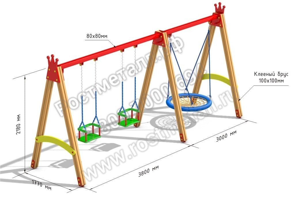 Столбы для детских игровых комплексов, а также в изделиях изготавливаются из клееного бруса. Он имеет большую прочность и долговечность, чем дерево и меньшую теплопроводность, почти не подвержен усадке.