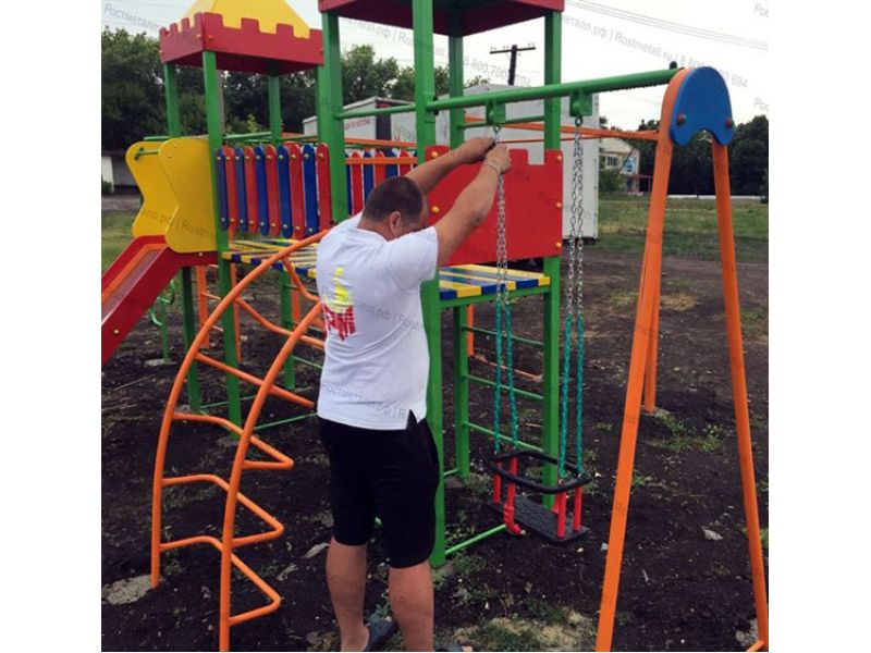 - Покрытие: Уложите безопасное покрытие, такое как резиновая крошка, искусственная трава или песок, чтобы смягчить возможные падения.