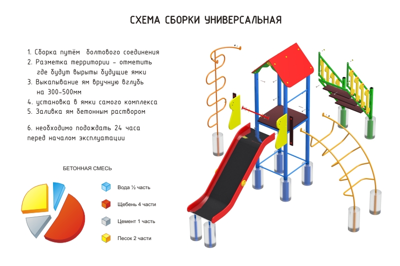 - Монтаж элементов: Установите игровые элементы в соответствии с инструкциями производителя. Убедитесь, что все детали надежно закреплены и соответствуют стандартам безопасности.