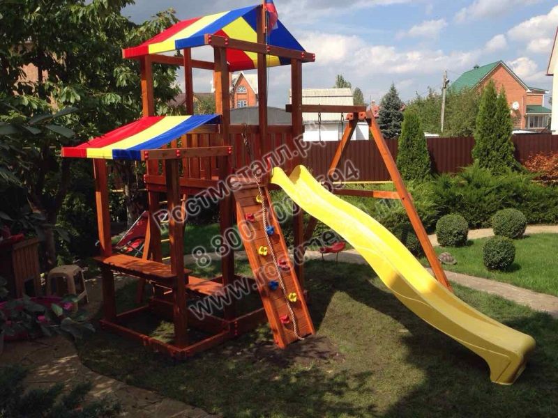 Детская игровая деревянная площадка для дач и частных домовладений предназначена для детей от 4 до 9 лет, создает условия, обеспечивающие физическое развитие ребенка, развивающие координацию движений, преодоление страха высоты, ловкость и смелость, чувство коллективизма в массовых играх.