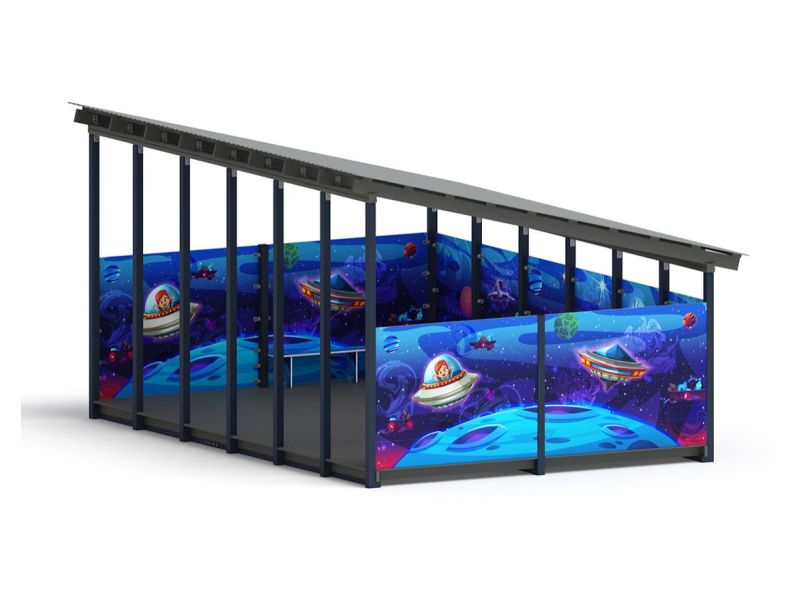 Металлические элементы красятся порошковой краской в 2 слоя. Перед покраской элементы проходят обязательный процесс обезжиривания. Порошковая краска обладает влагостойкостью, долговечностью, устойчивостью к перепадам температур и механическим повреждениям.