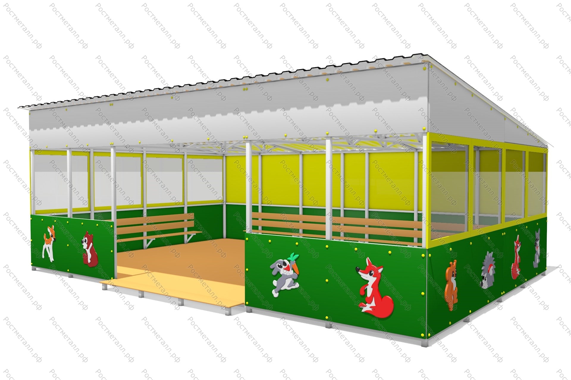 Металлические элементы красятся порошковой краской в 2 слоя. Перед покраской элементы проходят обязательный процесс обезжиривания. Порошковая краска обладает влагостойкостью, долговечностью, устойчивостью к перепадам температур и механическим повреждениям.