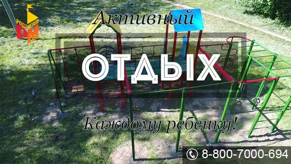 | Комплектация | 2 башни, мостик, скат из нержавейки, лаз дуга, качели, 2 турника, кольца гимнаст., рукоход, шест-змейка. |
