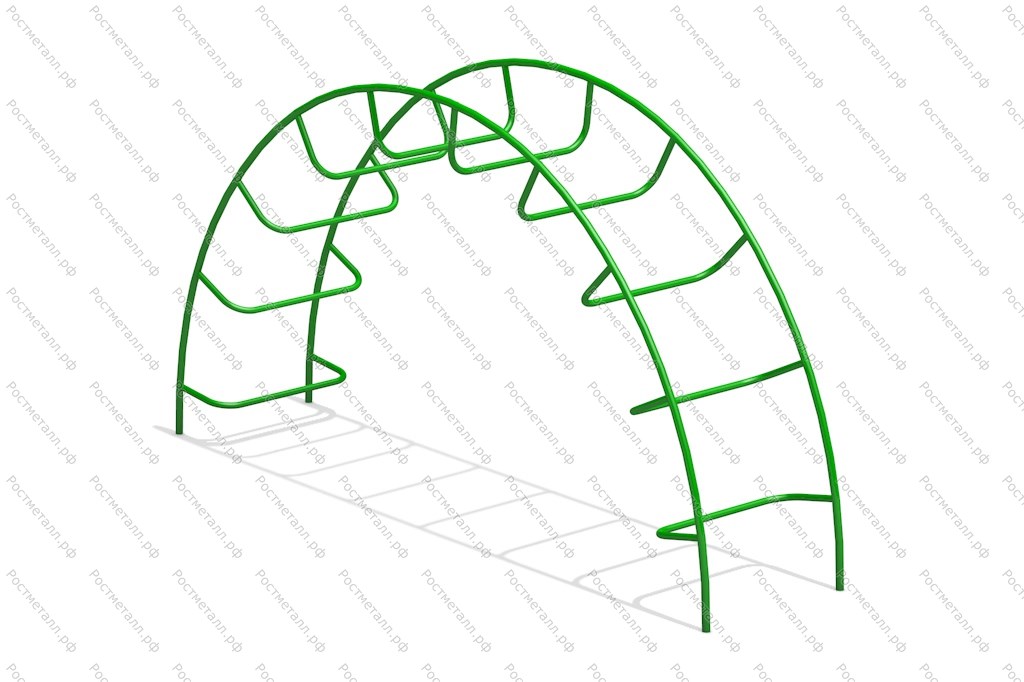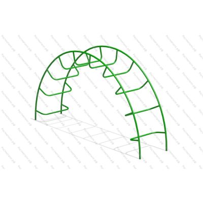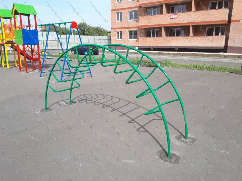 Описание Лаз должен представлять собой устойчивую конструкцию и состоять из двух дугообразных стоек, выполненных из металлической трубы диаметром не менее 42 мм, поперечные перекладины не менее 32 мм.