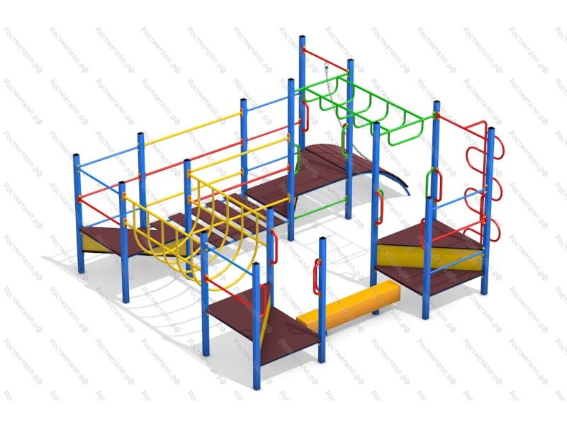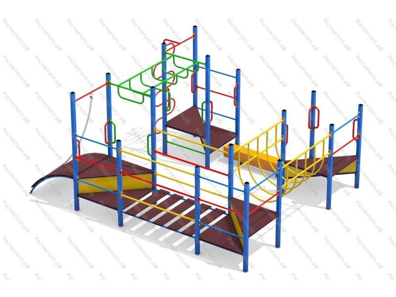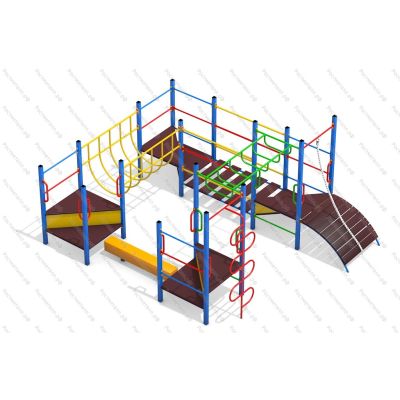 | Комплектация | Четыре основания, дорожка для бега, мостик горизонтальный, шест, рукоход, углублённый мостик, скалодром. |