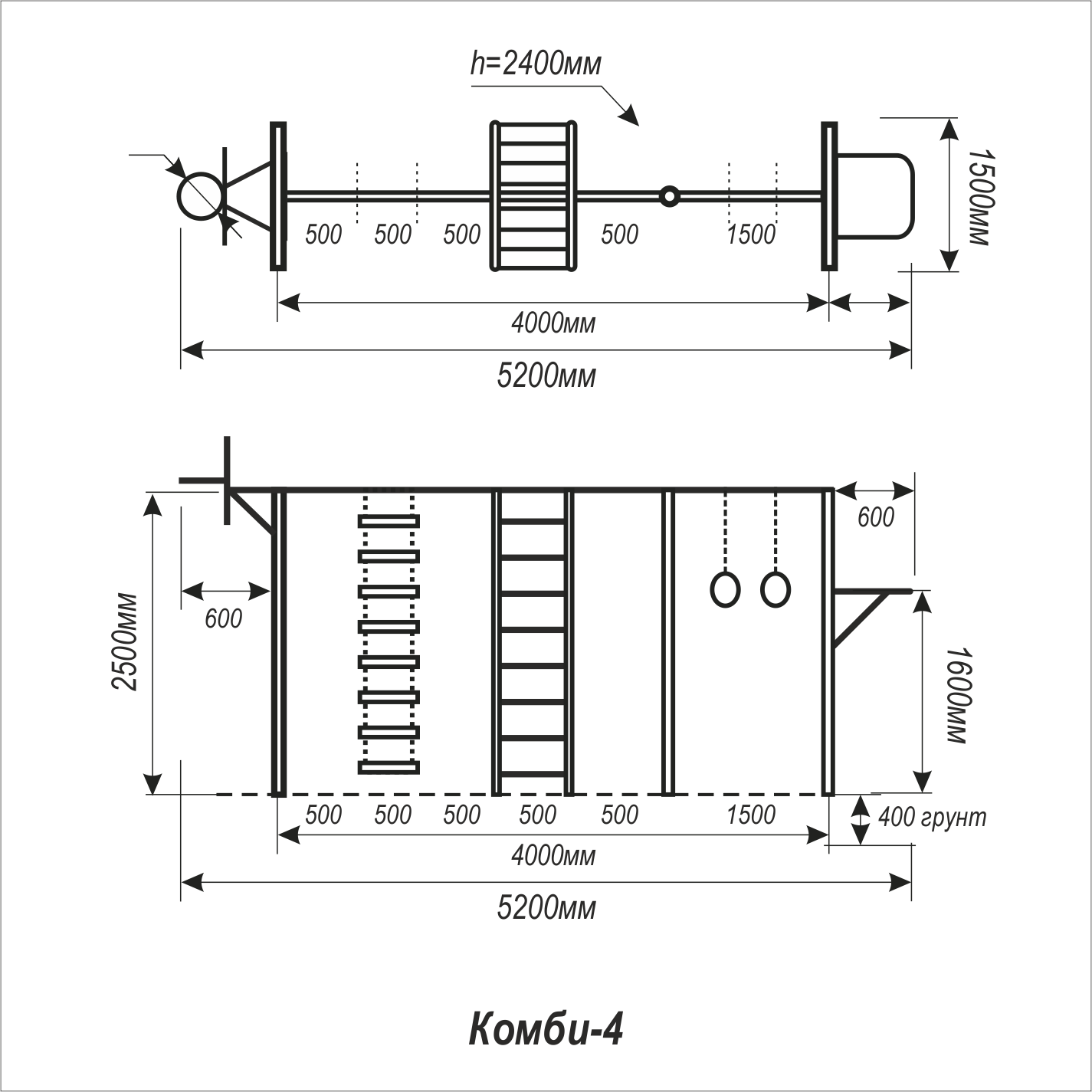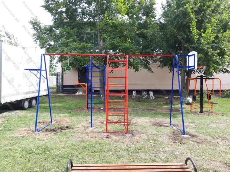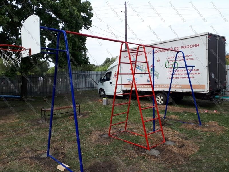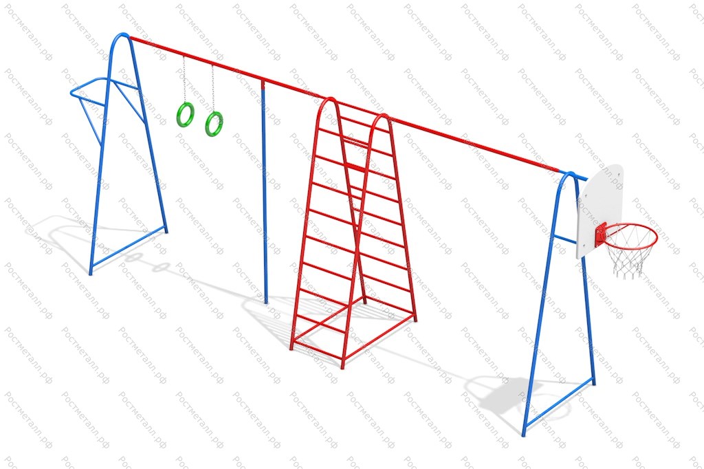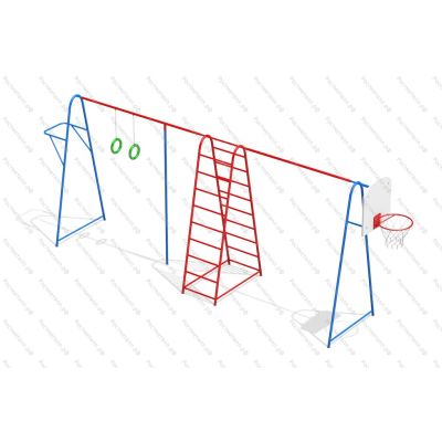 | Комплектация | Турник, кольца на канат, двухстор. лестница, лестница, баскетбольный щит. |