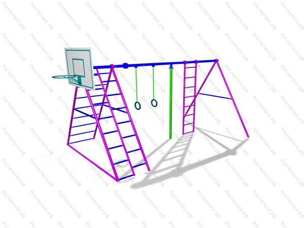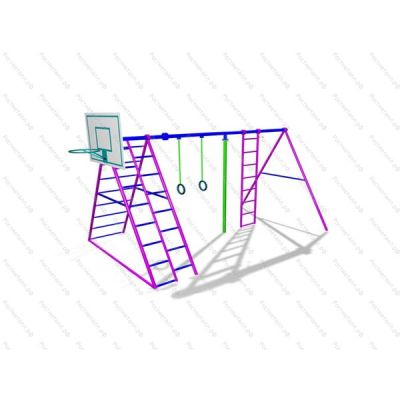 | Комплектация | Конструкция из шведской стенки наклонной, брусья, лесенка, баскетбольный щит. |