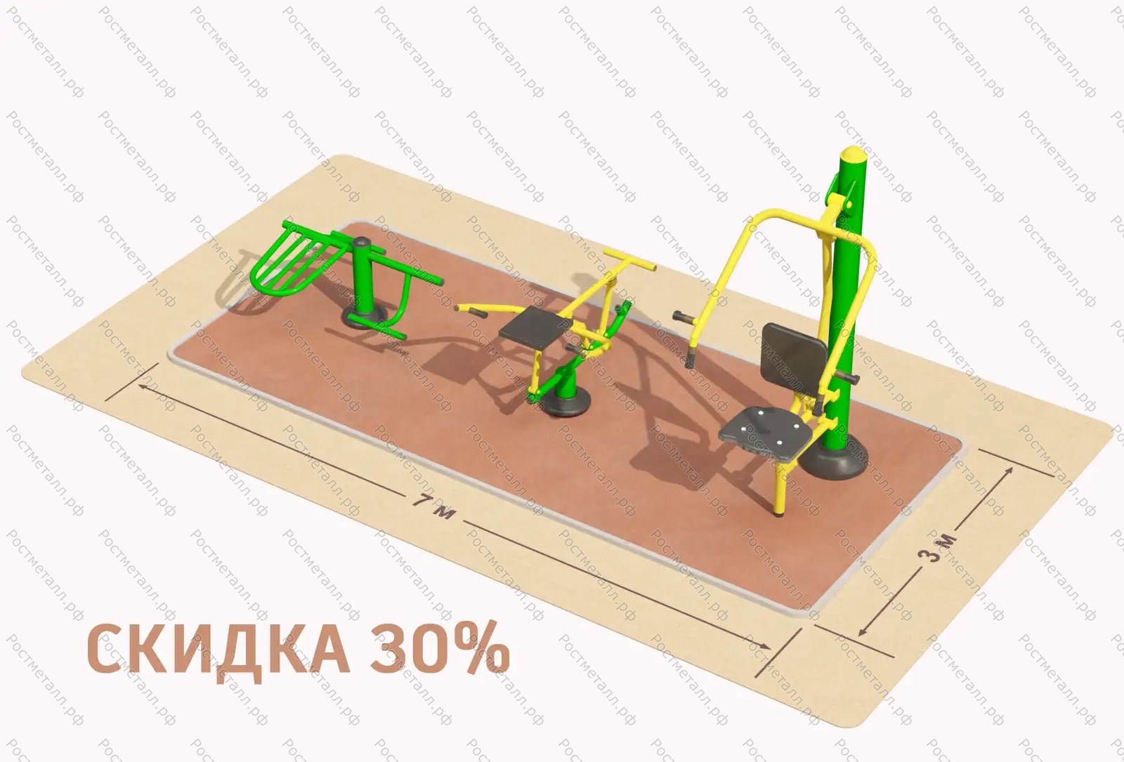 Материал Тренажеры - несущая труба d 133 (мм), труба d 56 (мм), труба d 34 (мм), пластина для закладных деталей 6 (мм)