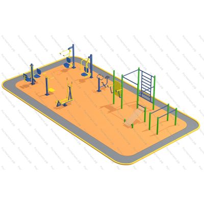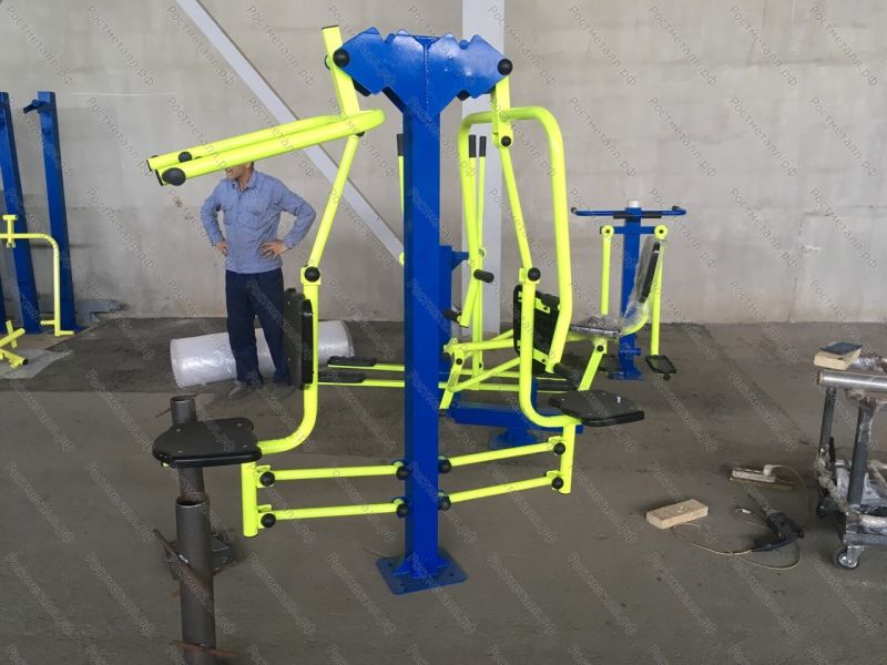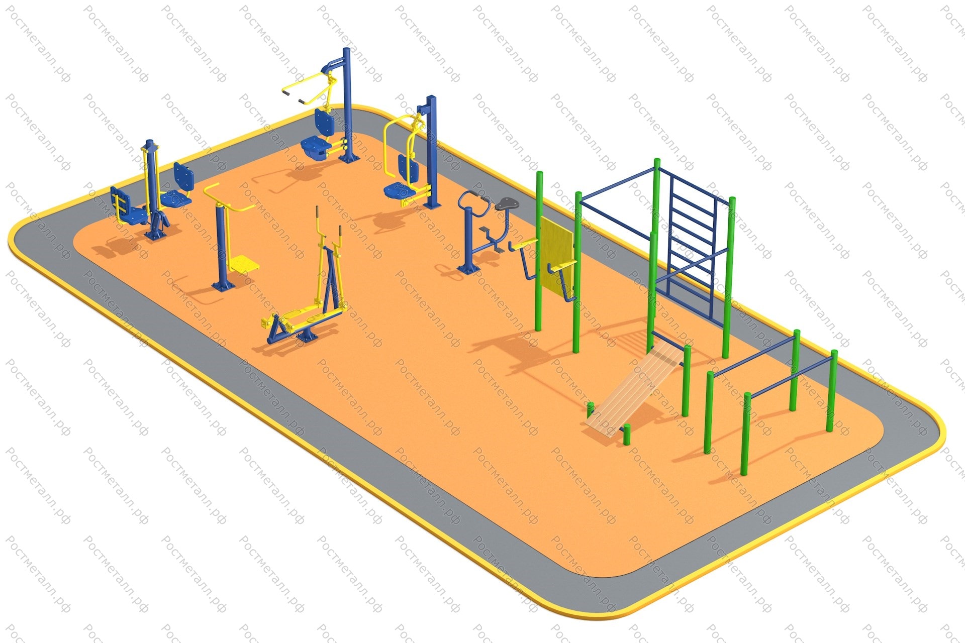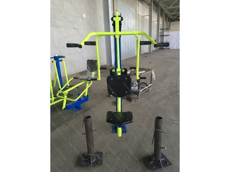 Комплектация тренажеров : Верхняя тяга 02, Маятник, Эллипс, Жим ногами сдвоенный, Велосипед, Нижняя тяга;