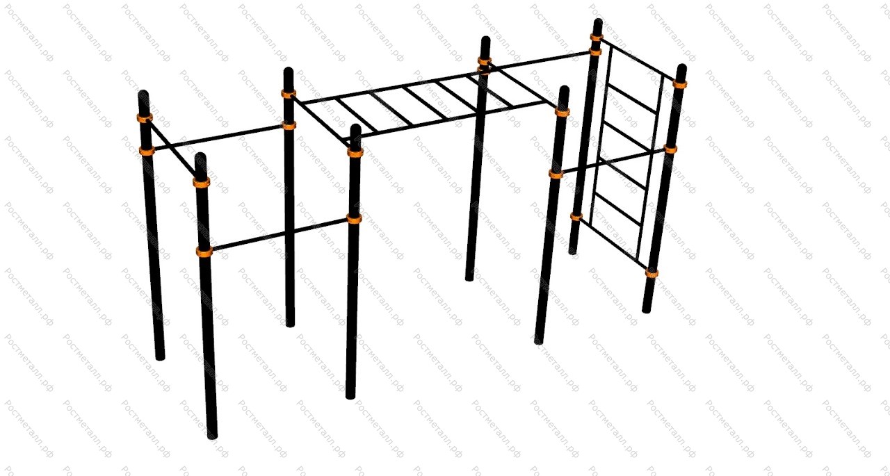 3. Секция шведской стенки выполнена из трубы диаметром 32 мм и 25мм и имеет отверстия Ф 12 мм в местах крепления к опорным стойкам.
